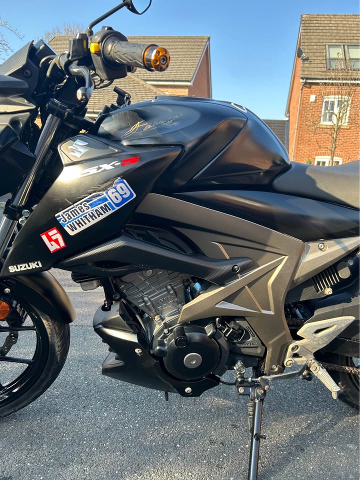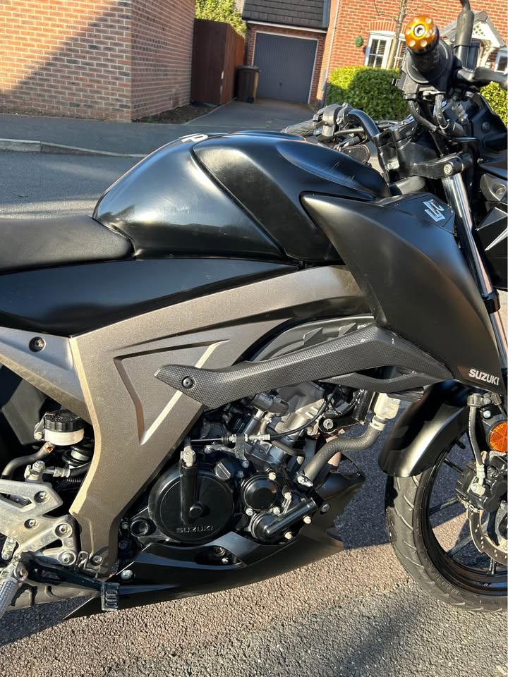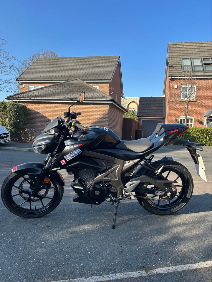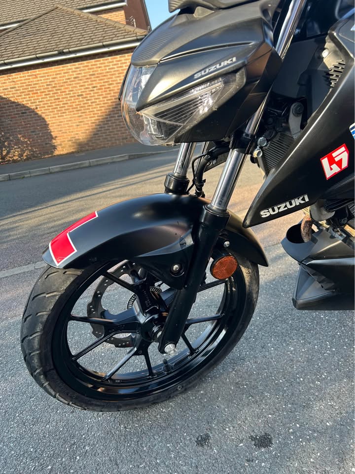Here is a 2018 Suzuki GSXS 125 in black only covering 4.4k genuine miles! The bike comes with the following; Full logbook MOT till 30th August Fully HPI clear 2 keys Book pack Bike is really solid, starts runs rides and stops perfectly! With it only being such low mileage everything is perfect on it! Absolutely flies for what it is, rides really really nice. Wheels, tyres and brakes good. No paint chipped. All lights work as should. Body work is good condition, bar a little scuff on front panel but rest of it is mint! Really nice little bike. Cheapest on here at £1849. Feel free to ask me any questions