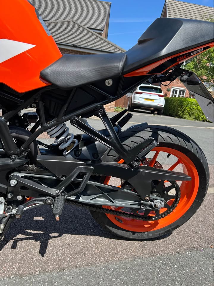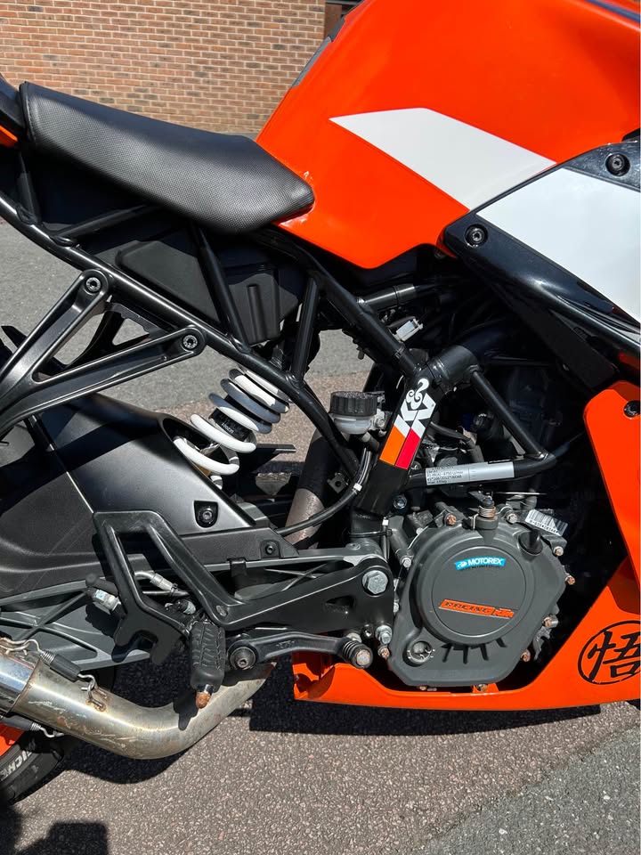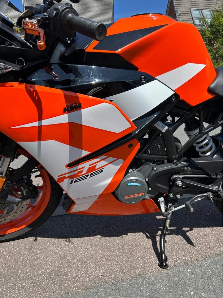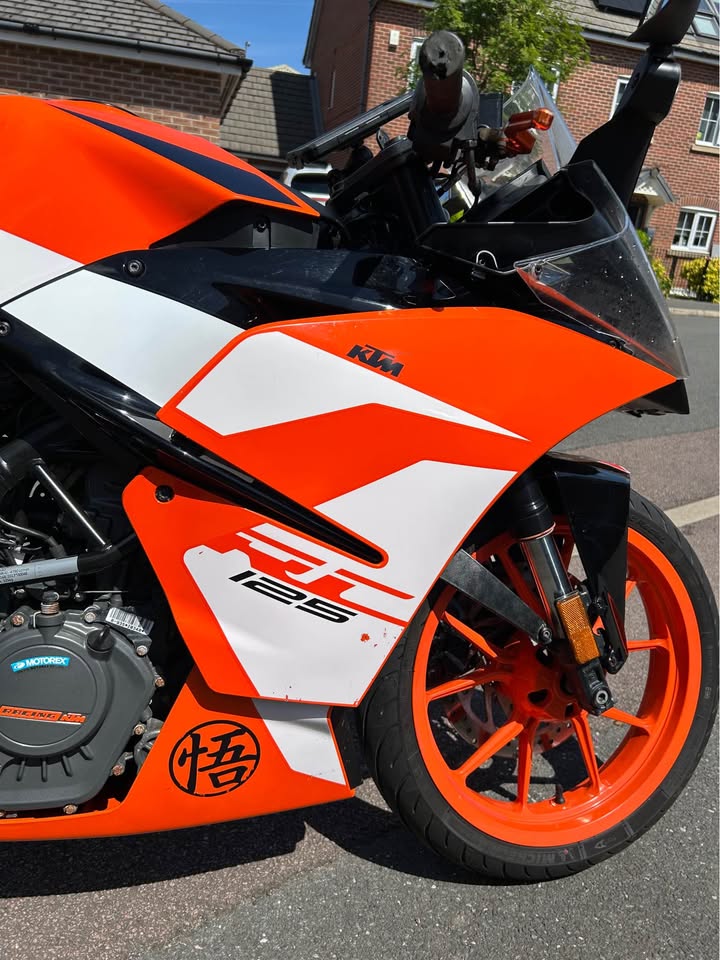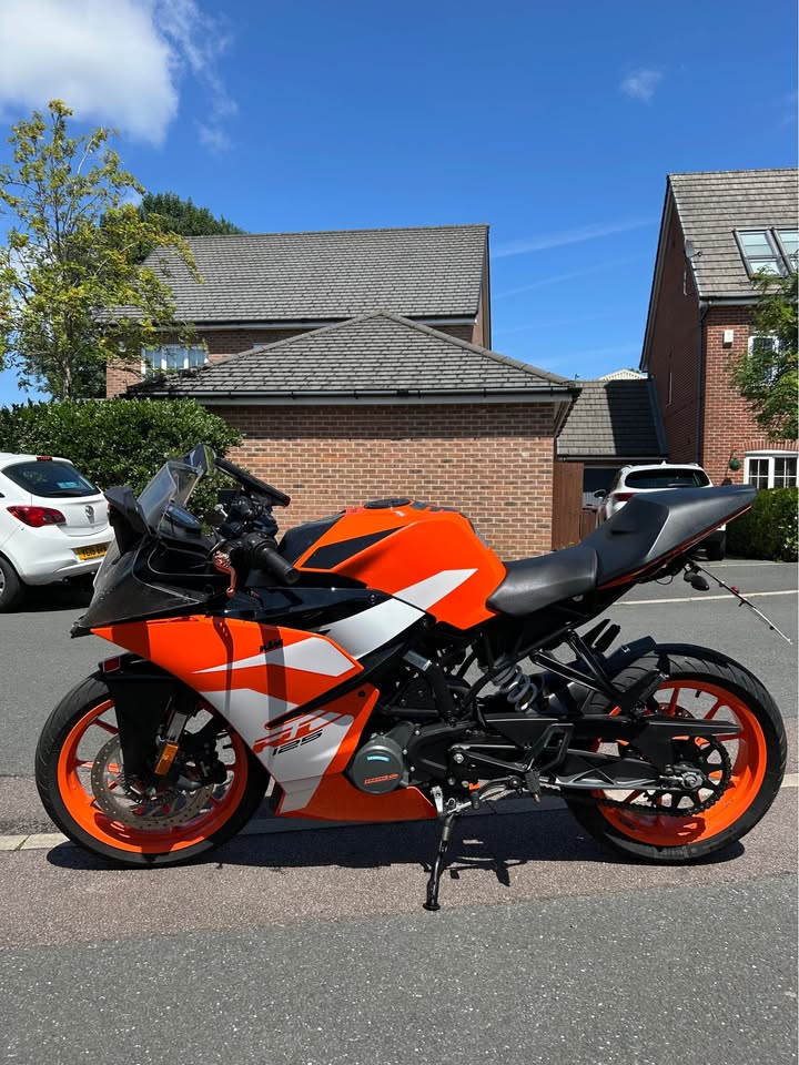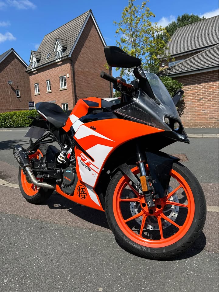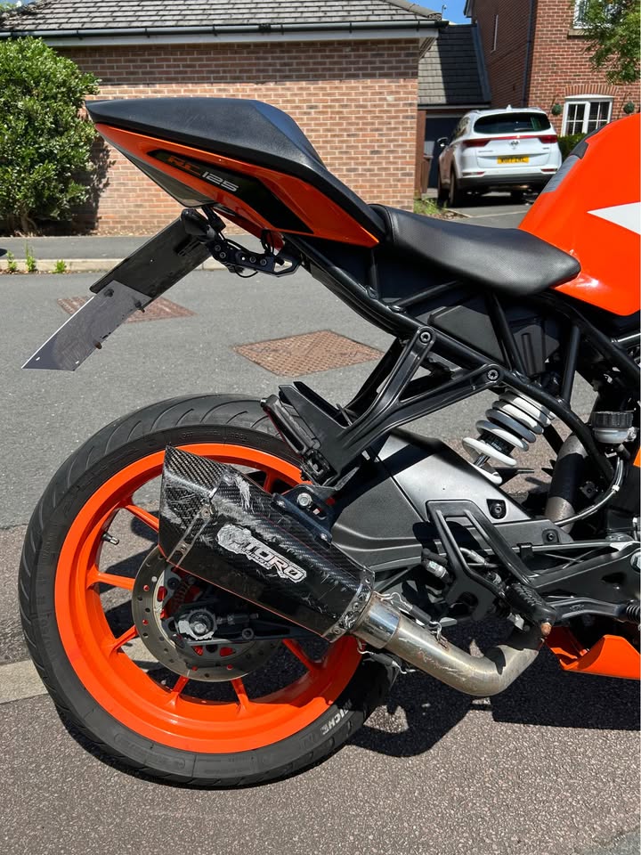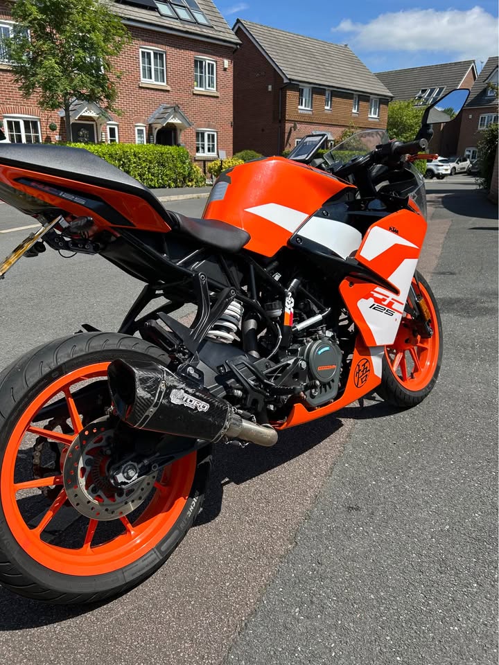 Here is a 68 reg KTM RC 125 in KTM orange covering only 6.6k miles! The bike has the following; Full HPI clear Full logbook MOT till June 2026 1 key Full Toro exhaust system Phone holder After market adjustable levers The bike starts, runs, rides and stops perfectly! Really fun and fast bike for a 125! The bike is in good condition for age, apart from some scratches to the end can (as pictured) and a few chips to front right fairing sticker (as pictured) but nothing bad. The rest of the bike is mint! Chain, sprockets, tyres and brakes have tons of life left! Priced at £2350 which i think is fair for the age and mileage compared to others! Can deliver anywhere in UK if view the bike first, or video call and fuel deposit paid. OR feel free to collect 🙂 any questions just ask Thanks